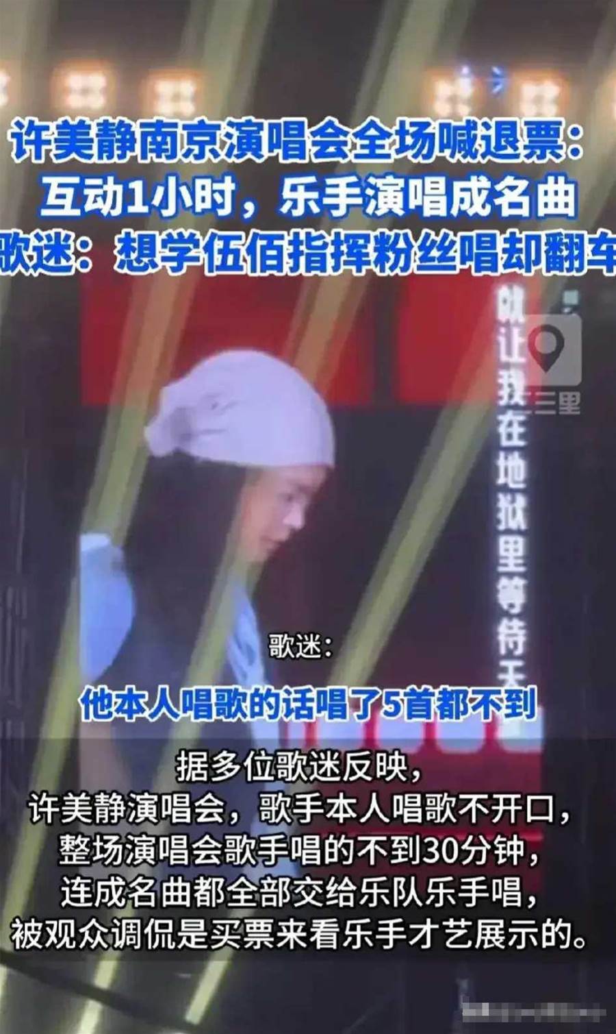 都是伍佰惹得禍?許美靜南京「復出演唱會」大型翻車,全場觀眾大喊退票