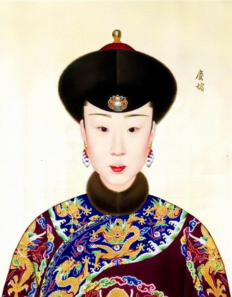 慶嬪,即後來的慶恭皇貴妃陸氏,此畫像為陸氏28歲時的相貌。陸氏17歲被封為貴人,28歲晉封為慶嬪,36歲晉封為慶妃,45歲晉慶貴妃,51歲薨。因其曾撫養過嘉慶帝,乾隆駕崩的第二天,慶貴妃被晉封為皇貴妃。