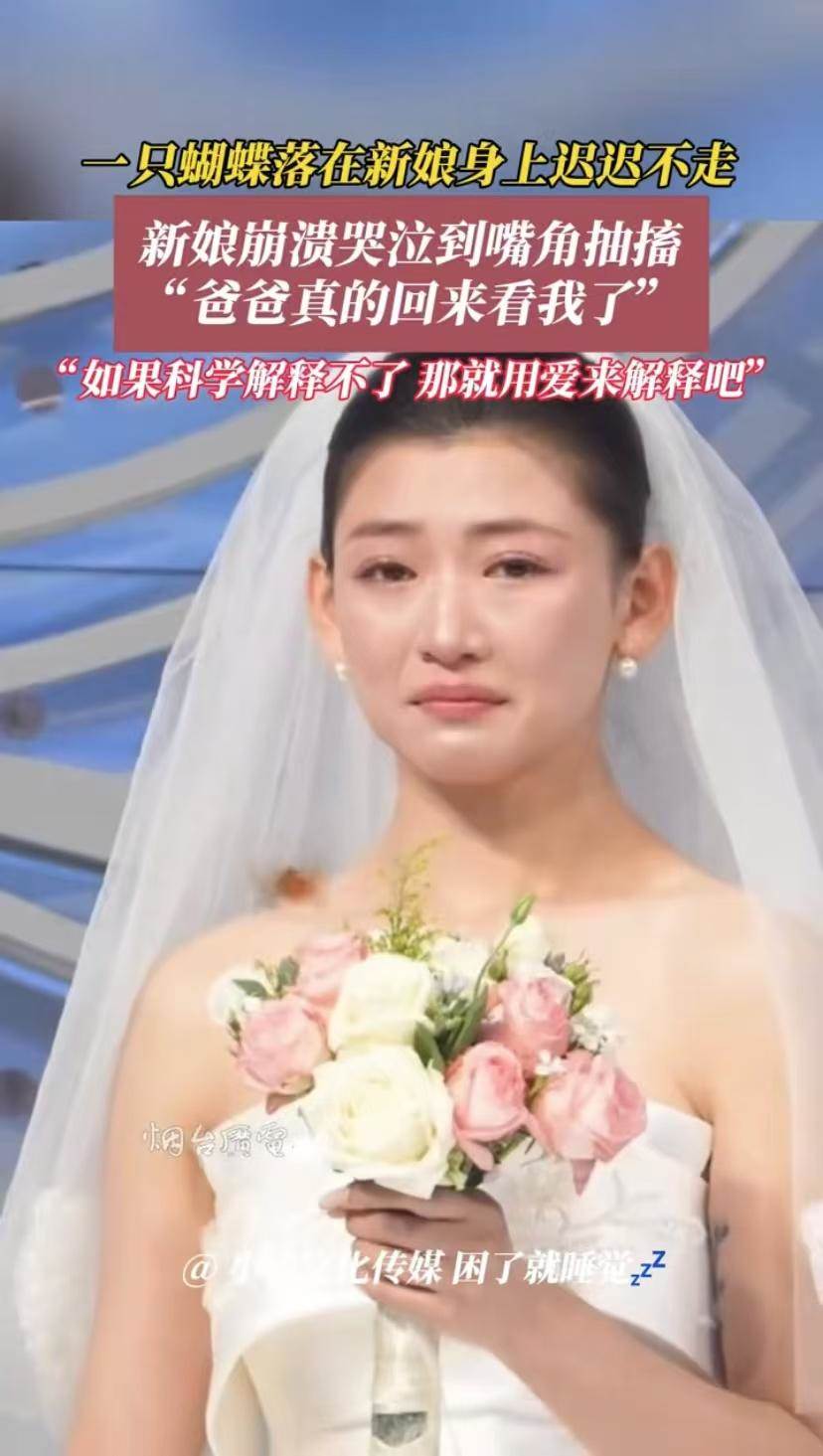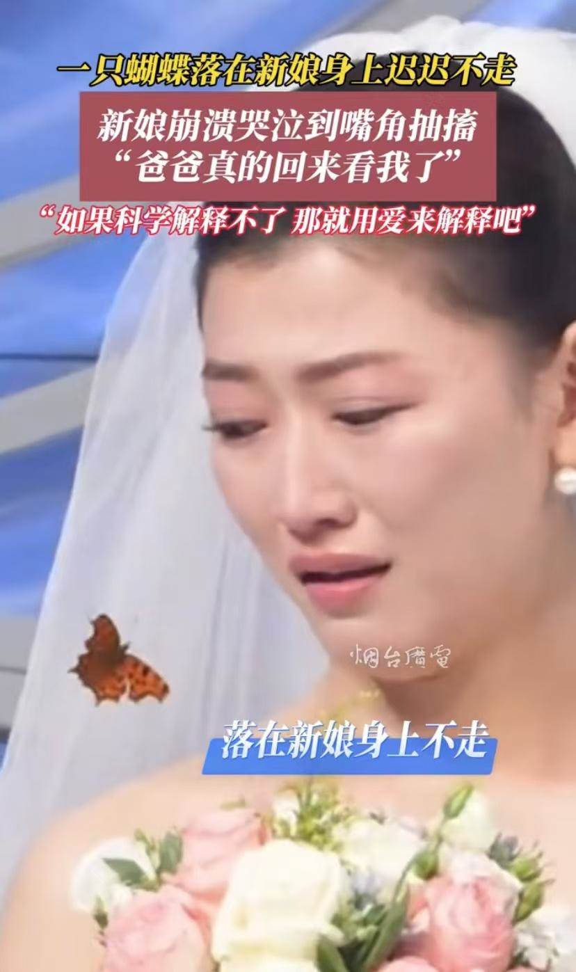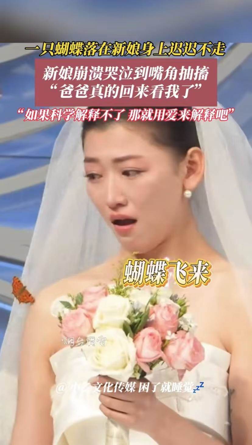 這就是冥冥之中的一種巧合,在這個特殊的日子,聞到花香的胡蝶就落在了新娘的身上,創造了這個奇跡,看到胡蝶,新娘首先想到的是爸爸,這可以說真的是父女情深。