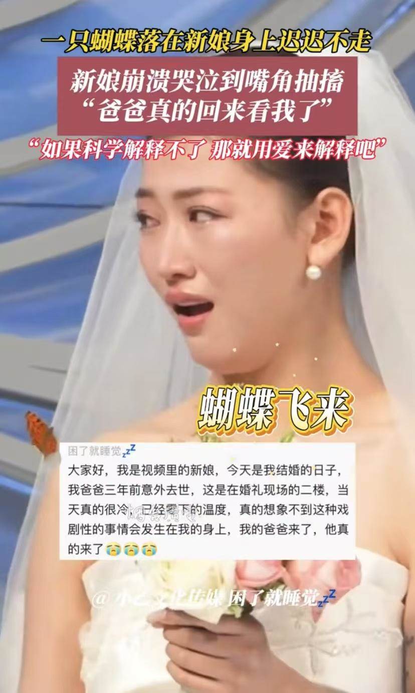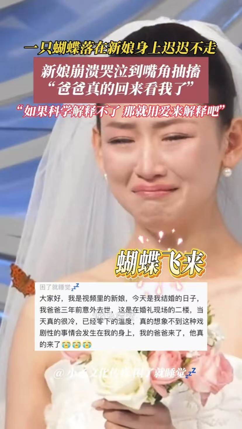 這位網友說,這真的是一種奇跡,一只胡蝶就讓新娘馬上想到了自己的爸爸,如果科學解釋不了,那就用愛來解釋吧。