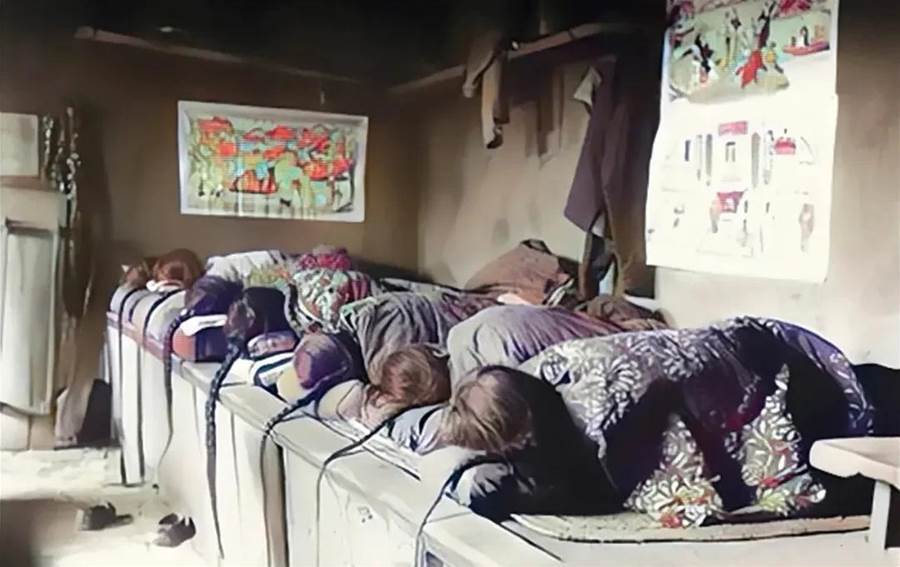 晚清7個人并排睡在大炕上,看著睡覺環境很差。