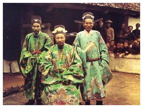 1909年,一位名叫阿爾貝·卡恩的法國慈善家來到了中國,進行為期23天的旅程,他帶著10多位攝影師,拍下了無數珍貴的老照片,他也是最早用彩色記錄世界的人。照片裡的官員們,穿著華麗的官服,表情有些緊張。他們的衣服,和身後老百姓的布衣形成鮮明對比。