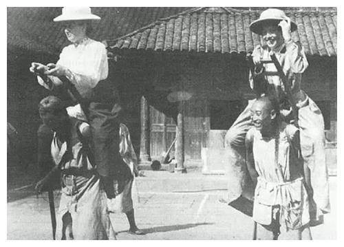 這種「出行方式」,在如今肯定是看不到了,它產生于黃包車之前,由于方便快捷且便宜,受到了不少有錢人的歡迎,兩位洋人太太看到這種新奇的出行方式,也忍不住試了試,而接到活兒的車夫,也露出了開心的笑容。
