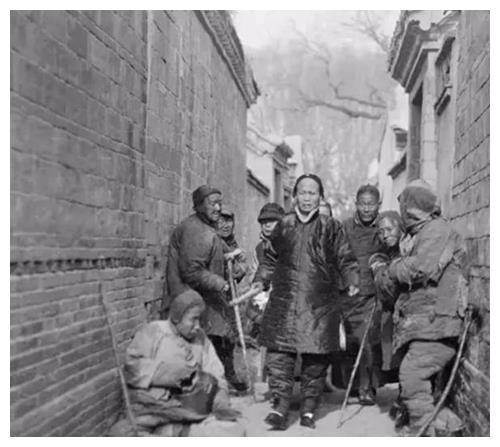 從照片中女子的衣著打扮不難看出,她出身于富貴家庭,她的旁邊,圍滿了衣衫襤褸的百姓,他們或許在等貴婦施捨自己一些錢。